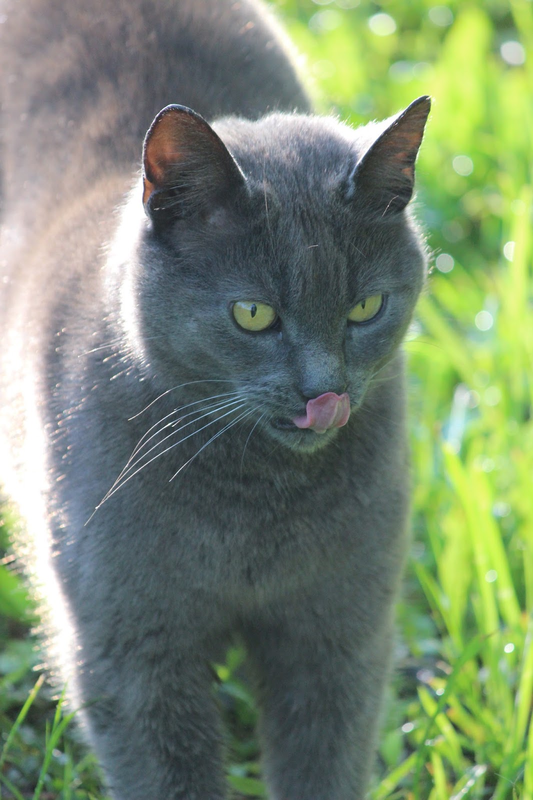 Here is Hermione, one of the barn cats. She is stepping on my feet and when I move, she attacks. Thank goodness I have boots on. In this photo, she looks like she's thinking about those little grackle snacks in the barn.
